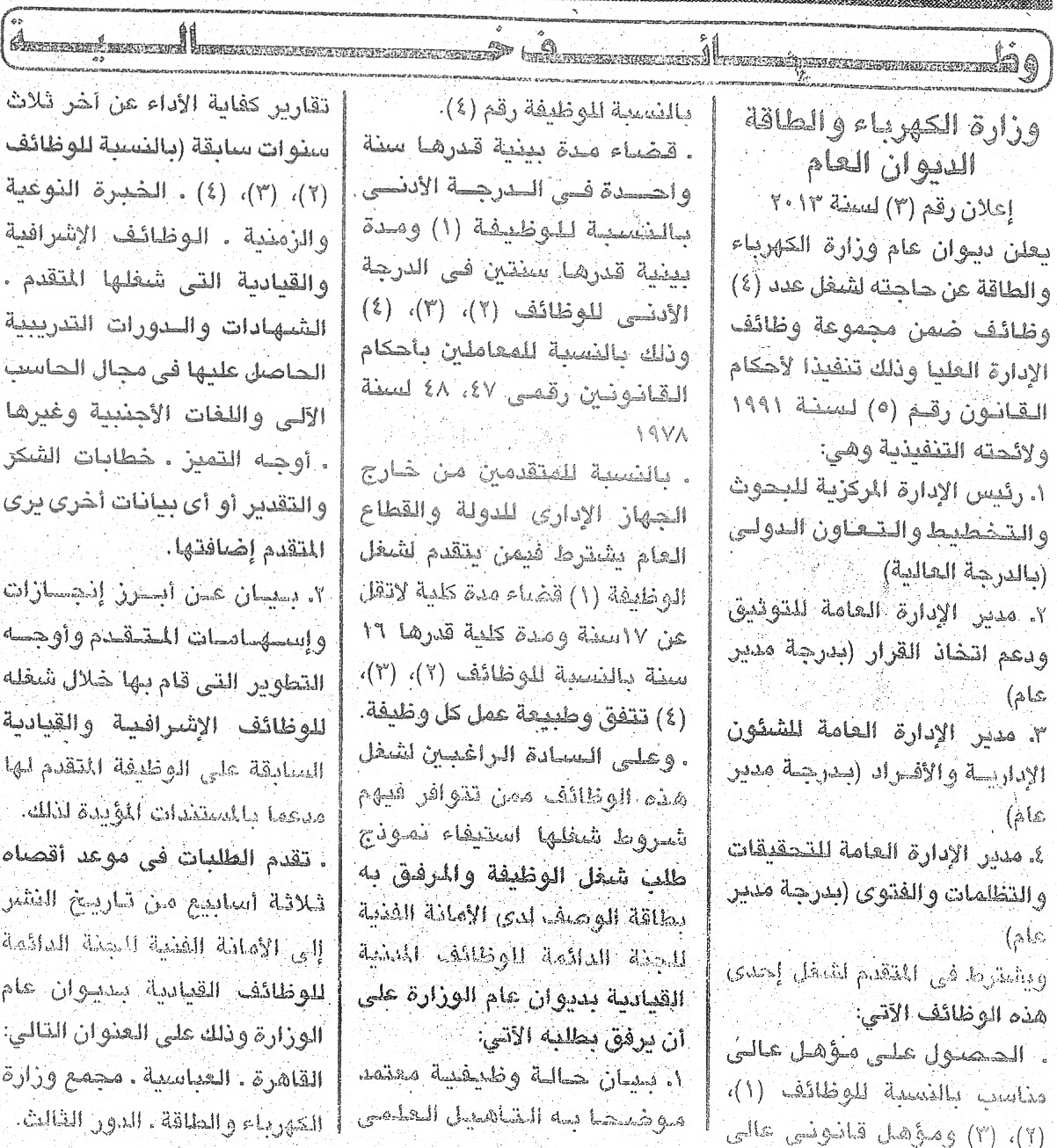 | وظائف وزارة الكهرباء والطاقة 2014- مصر |